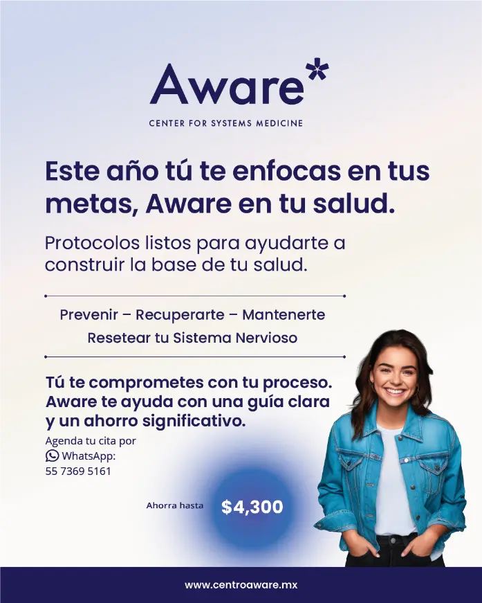 👉 El primer paso ya lo diste, porque ahora sabes mucho más sobre tu salud que antes. Da el siguiente paso: agenda tu evaluación inicial o solicita más información sobre los Protocolos Aware. 📞 Enviar mensaje por WhatsApp 📲 +52 55 7597 6381